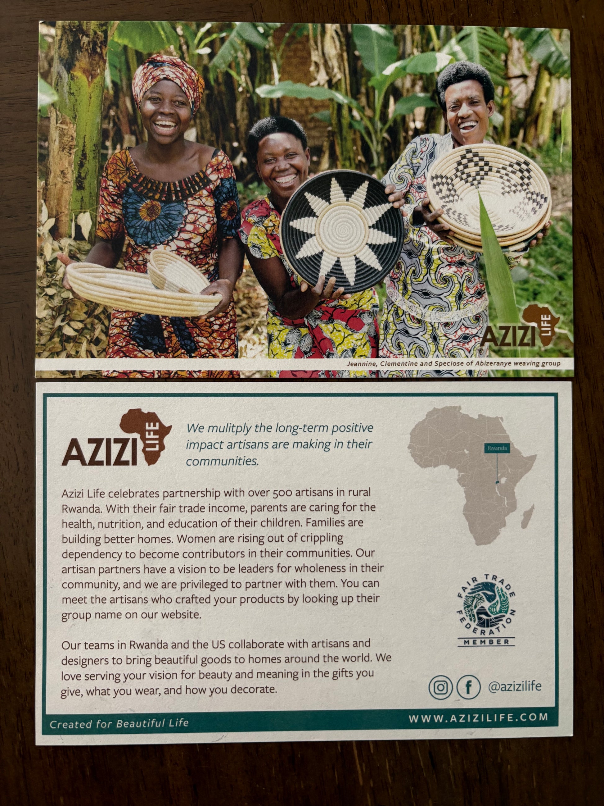 **Visit the Artisans section of Azizi Life website to read about their cooperative and see a photo of the artisan behind your piece. Perfect for gift giving—this special touch makes your gift even more meaningful.