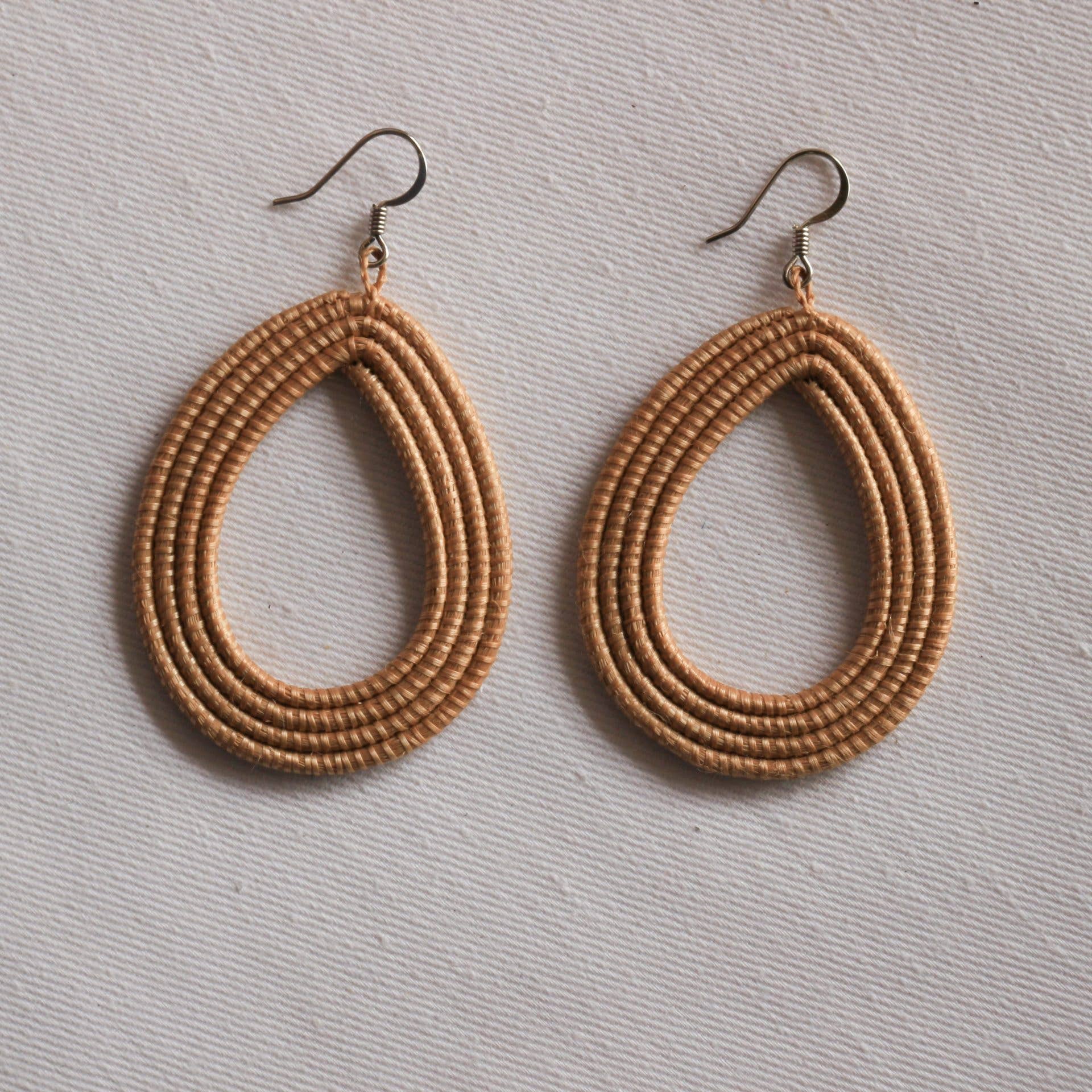 Our loop earrings are a fun and beautiful addition to your wardrobe and great cIf these are statement earrings, we love the statement they make: women across the world, motivated by love. So good. The women who weave these earrings use natural sisal fibers and age - old basket weaving skills to create the lightweight loops, which we then complete with hypoallergenic earring hooks.